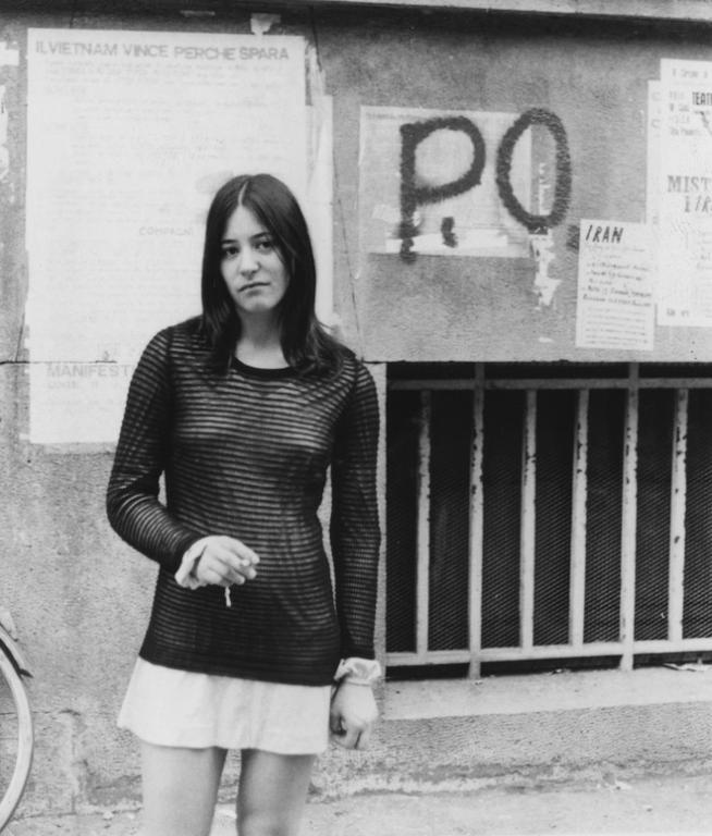 Η Λεοπολντίνα Φορτουνάτι, μπροστά από γκράφιτι της Potere Operaio, Ιούνιος 1972.